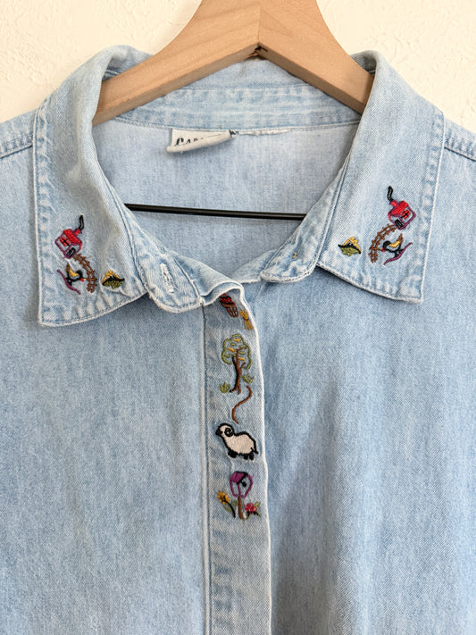 Embroidered Denim Button Up (XL)