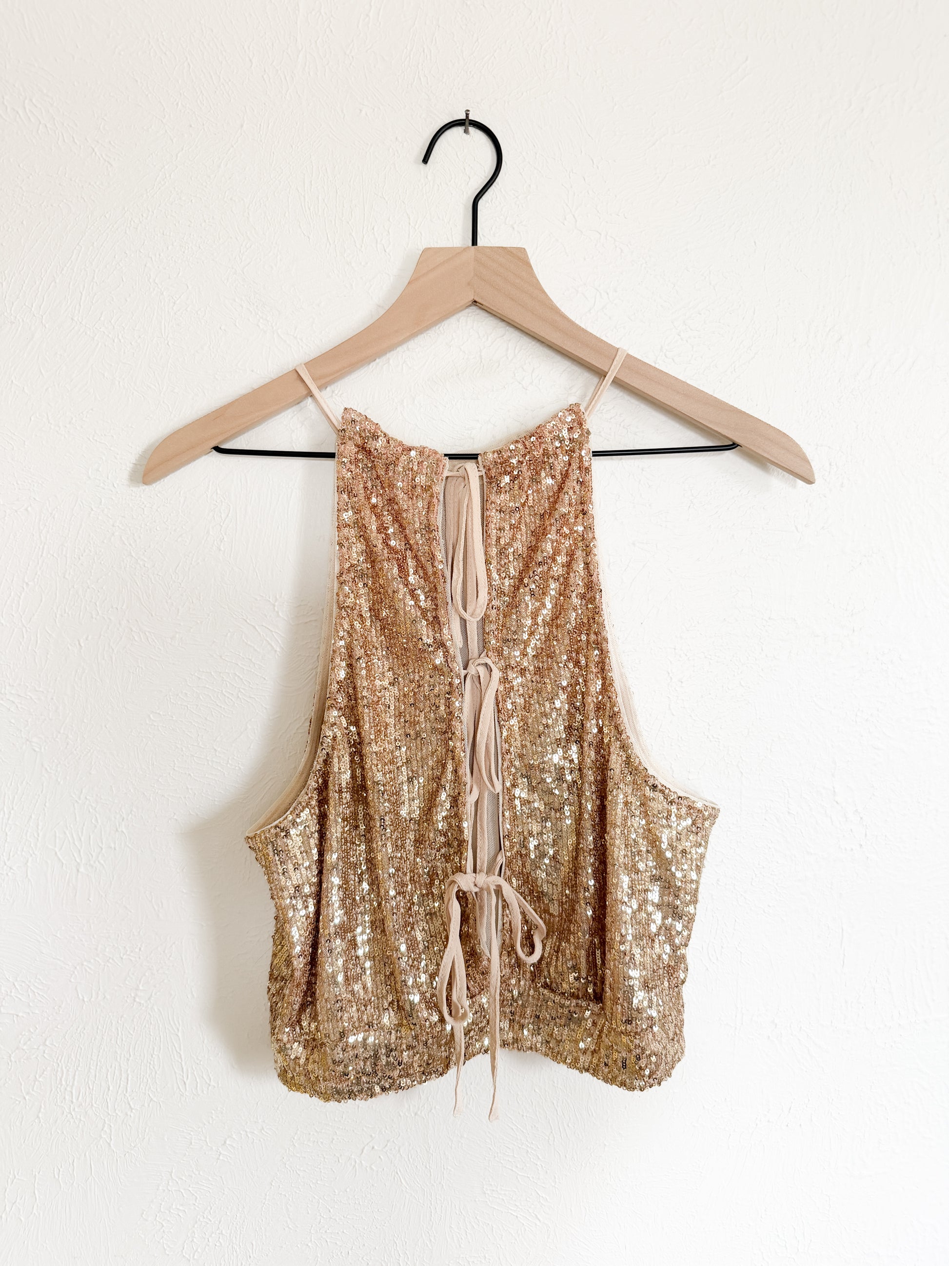 Free People ‘Lights Out’ Gold Sequin Halter Tank (M)